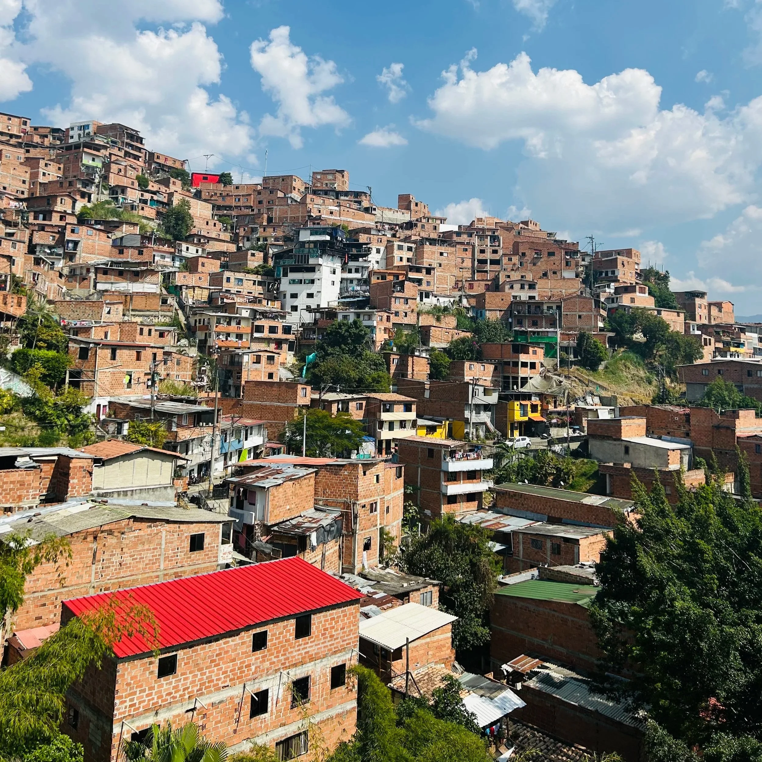 Once farmland, Comuna 13 was settled by a low socioeconomic group in the 1970s. Back then there was no public transit so residents had to suffer an arduous hike to get in or out of the mountain. With no access to education or jobs, people turned to gangs and drugs for money.